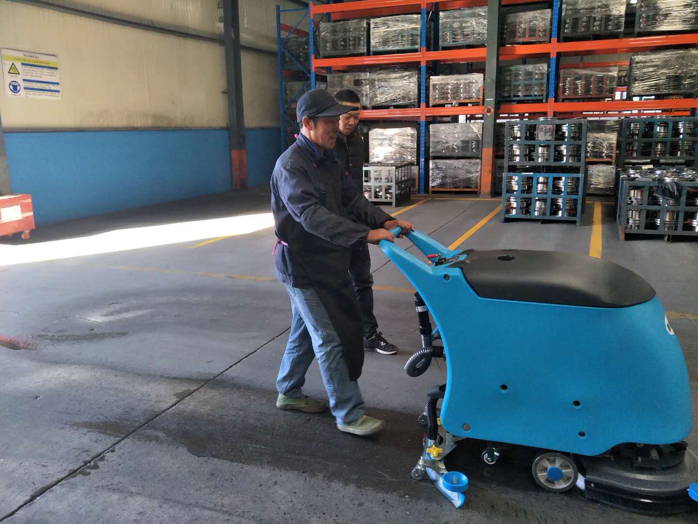 4、打開(kāi)洗地機(jī)的各個(gè)控制開(kāi)關(guān),然后推動(dòng)手推式洗地機(jī)或者開(kāi)動(dòng)駕駛式洗地機(jī)進(jìn)行清洗地面。