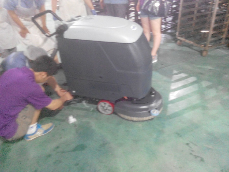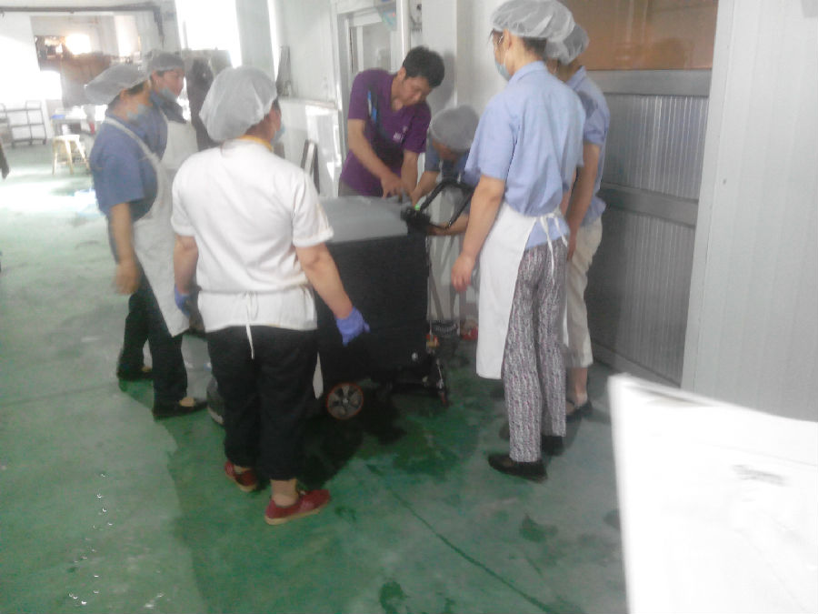 食品廠保潔阿姨輕松使用鼎潔520洗地機(jī)