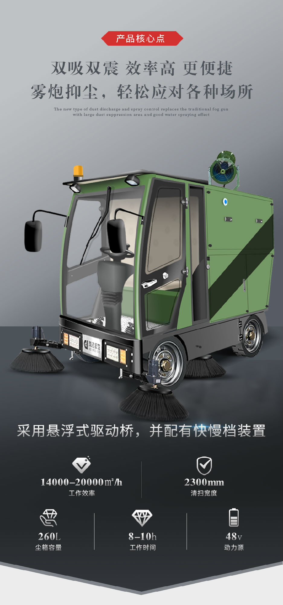 適用場(chǎng)所:四風(fēng)機(jī)、四濾芯、四振塵清掃;加高壓清洗;加霧炮;多功能一體滿足多種場(chǎng)景需求。