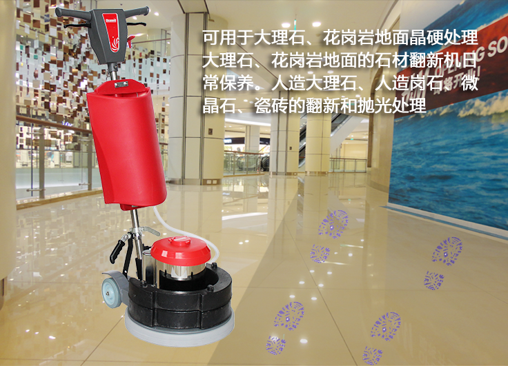 適用場(chǎng)所:針對(duì)賓館、酒店、大廈商場(chǎng)、機(jī)場(chǎng)超市等高檔場(chǎng)所的天然石材(大理石、花崗巖)打磨翻新晶面處理,是再造石材靚麗光亮的工具