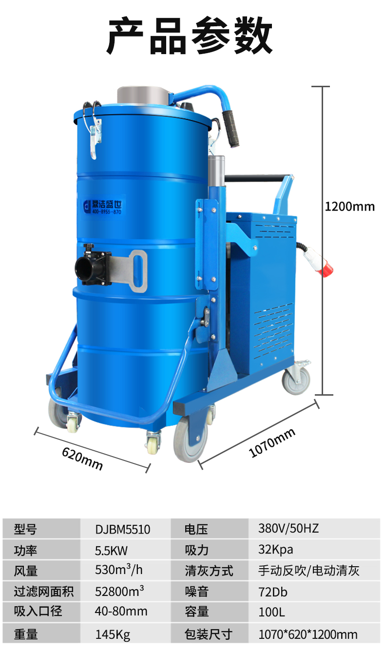 適用場所:DJBM5510工業(yè)吸塵器具結(jié)構(gòu)緊湊、造型美觀、使用安全、經(jīng)濟(jì)耐用的特點,物料收集桶和吸塵機(jī)可分離,方便集塵桶傾倒及物料回收。