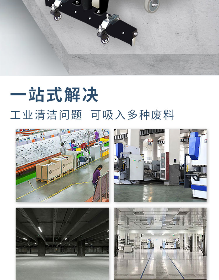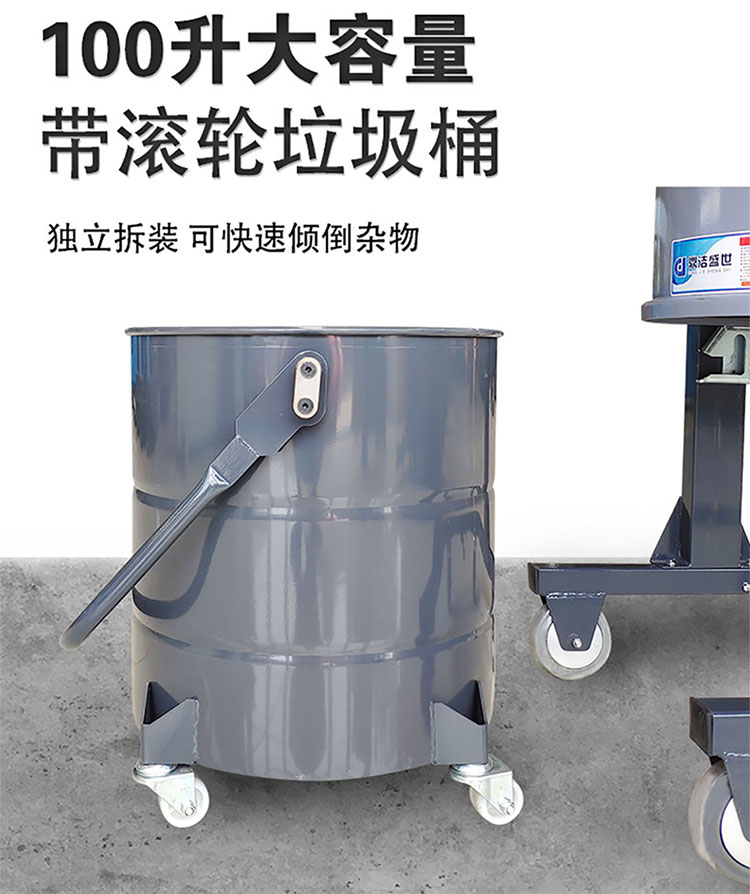 適用場所:工業(yè)專用吸塵器大功率吸力強(qiáng)、干濕兩用、反吹除塵。一站式解決工業(yè)清潔問題,可吸入多種廢料,自帶100升大容量帶滾輪垃圾桶,可獨立拆裝,可快速傾倒雜物。