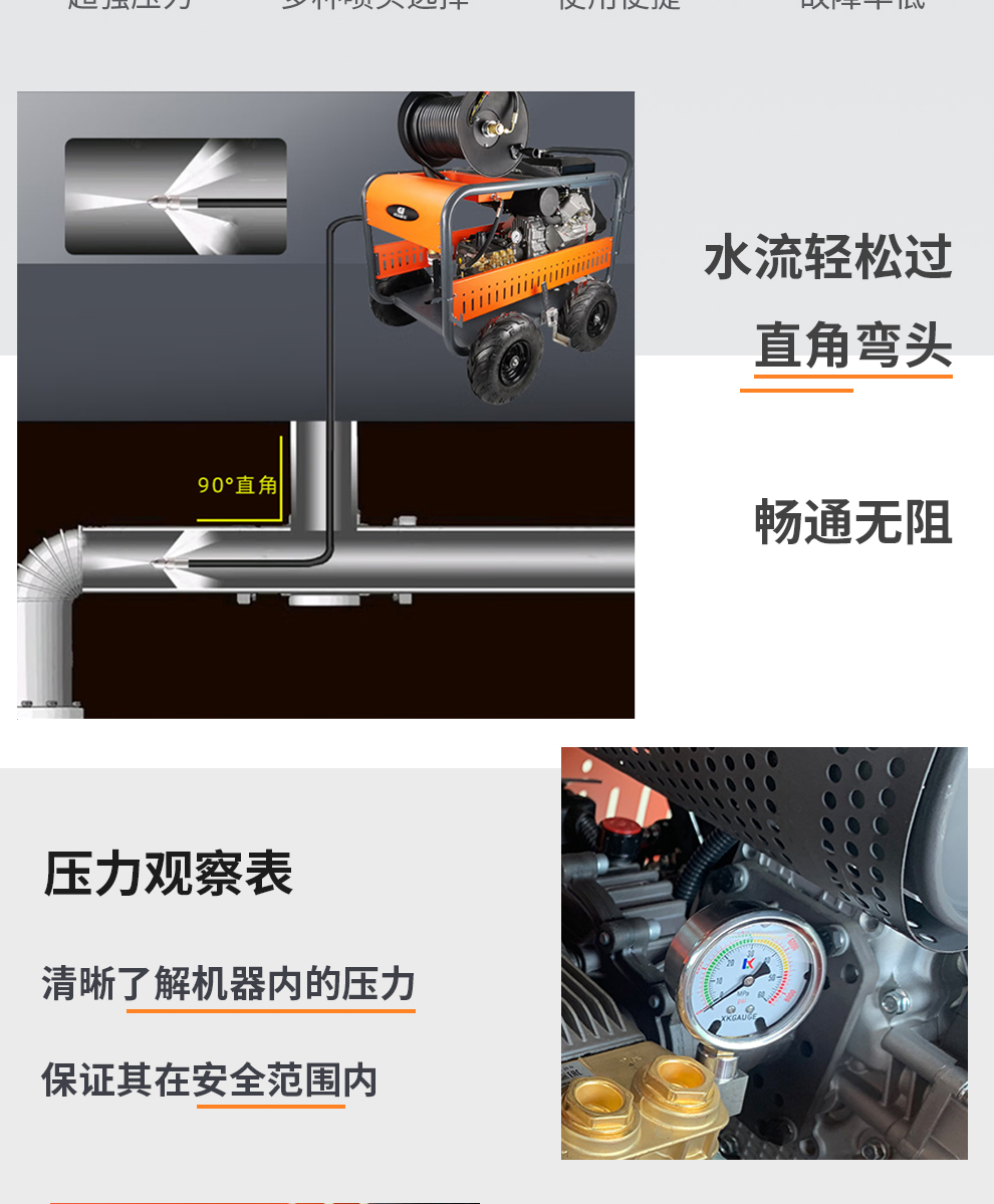 適用場(chǎng)所:市政下水管道疏通,小區(qū)物業(yè)管道疏通,油田煉油廠油管疏通,化工原料管道疏通,工廠換風(fēng)管道疏通,以及生活管道疏通等