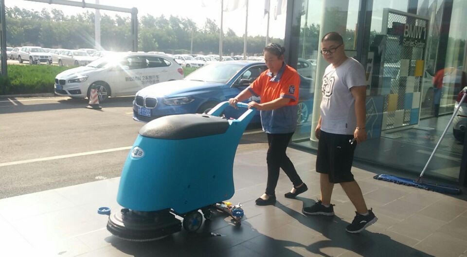 BMW汽車(chē)4S店早在一年前就開(kāi)始拋棄傳統(tǒng)的保潔方式,開(kāi)始用洗地機(jī)設(shè)備來(lái)清洗地面。手推式洗地機(jī)效率高,清洗過(guò)后的地址直接是干的,不留印記,隨時(shí)都能正常營(yíng)業(yè)。鼎潔盛世手推式洗地機(jī)一小時(shí)可以清潔二千平方米左右,一臺(tái)設(shè)備勝任替五六個(gè)人的工作量。