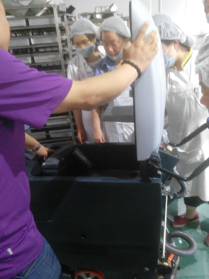 食品廠保潔阿姨輕松使用鼎潔520洗地機(jī)