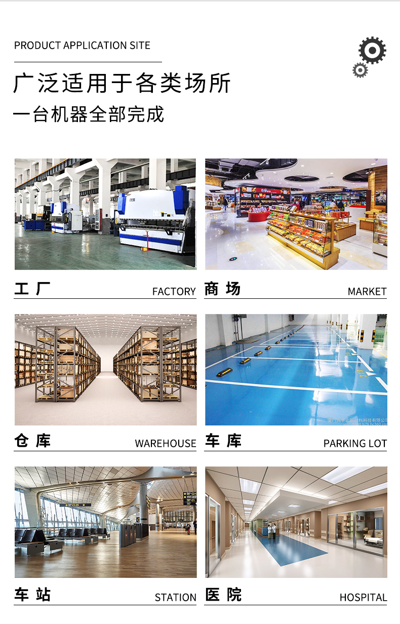 適用場所:? ?車間、超市、酒店、高鐵站、展館等大型場所的硬地面保潔與保養(yǎng)。如:環(huán)氧樹脂地面、大理石地面、拋光磚地面、水磨石地面等。
