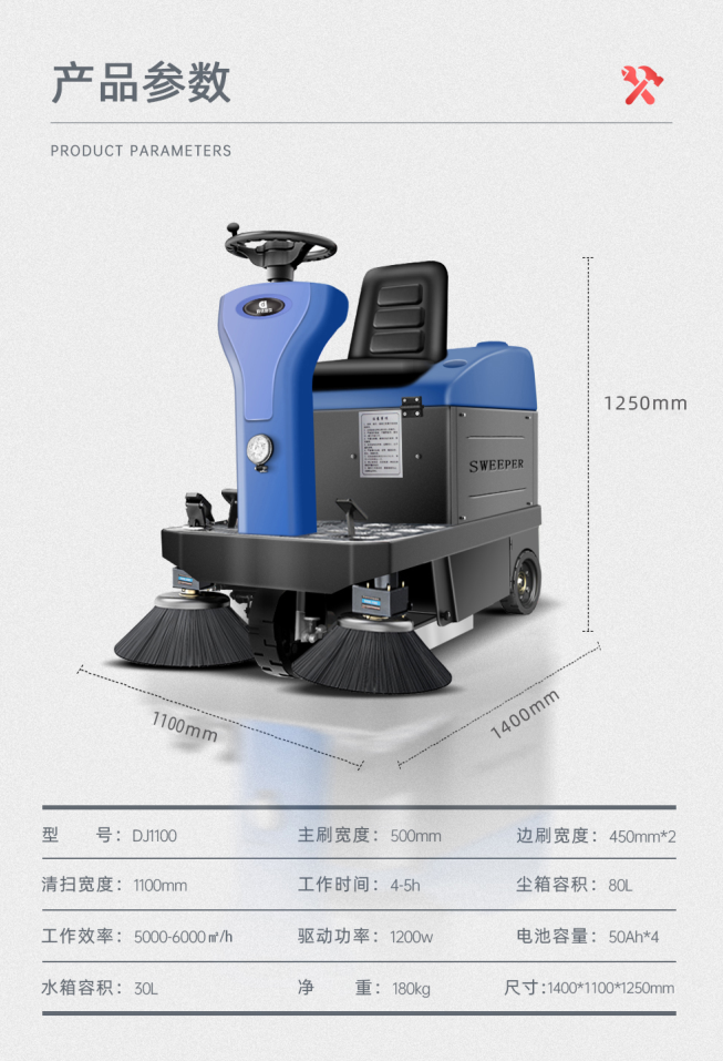 鼎潔盛世商用小型電動(dòng)駕駛式掃地車DJ1100