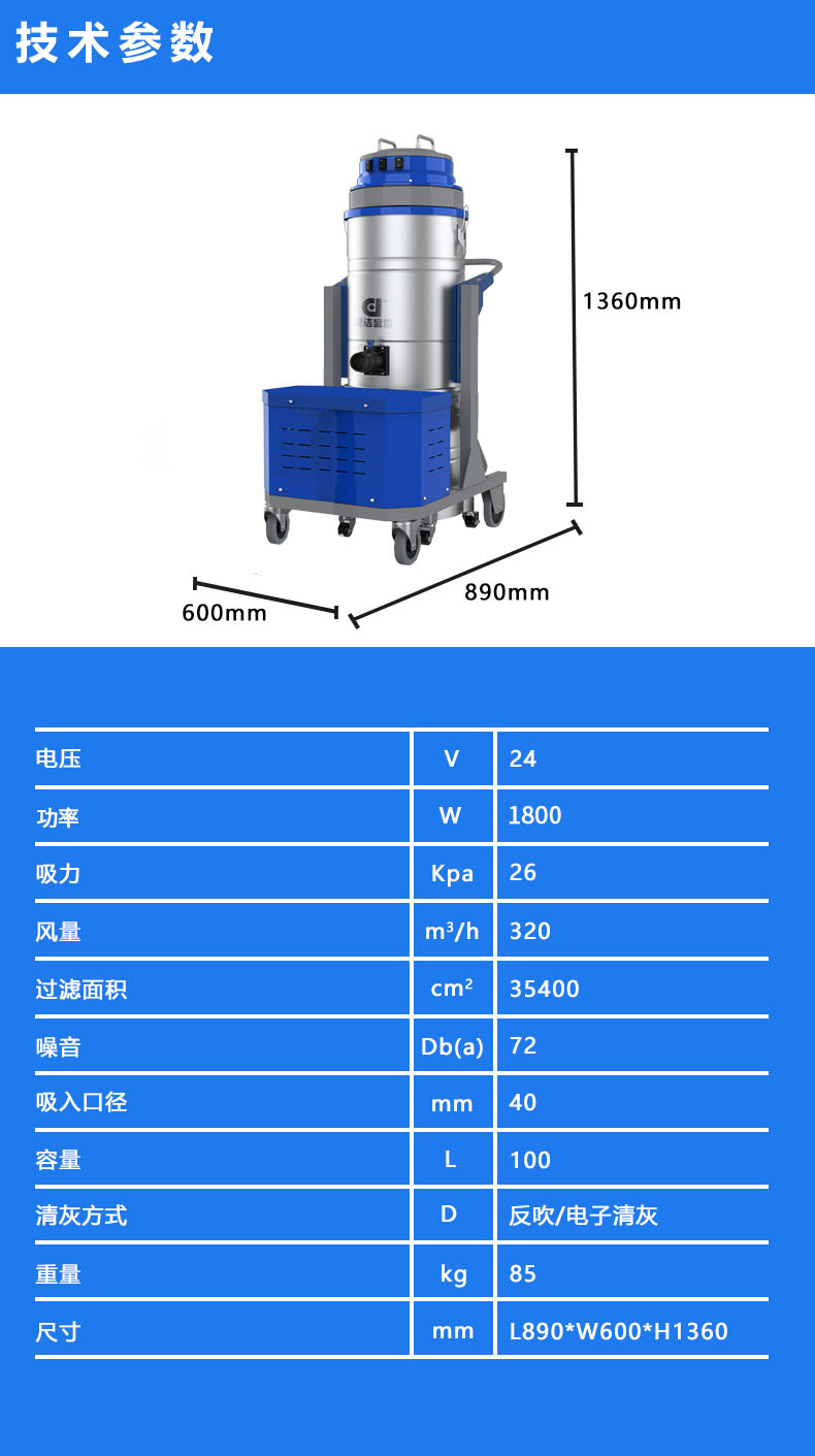 鼎潔盛世商用電瓶吸塵器DJ-DP15100