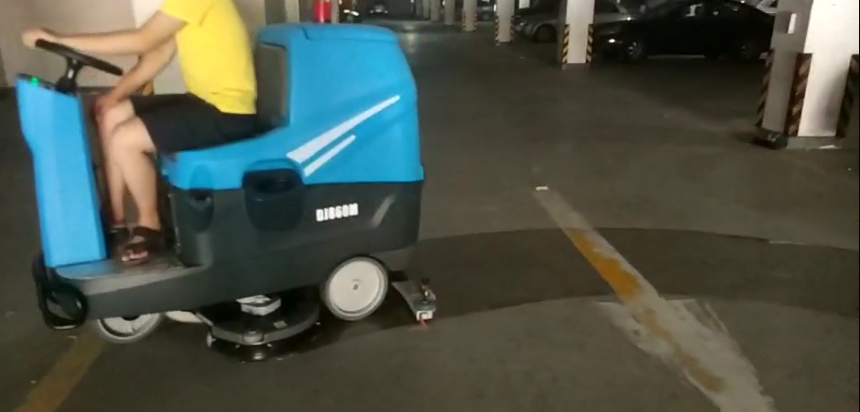 洗地機對于地下車庫的清潔效果要比掃帚顯著的多,洗地機是刷洗地面,然后通過洗地車后面吸水扒再把污水全部吸干凈,從而達到一塵不染的效果。