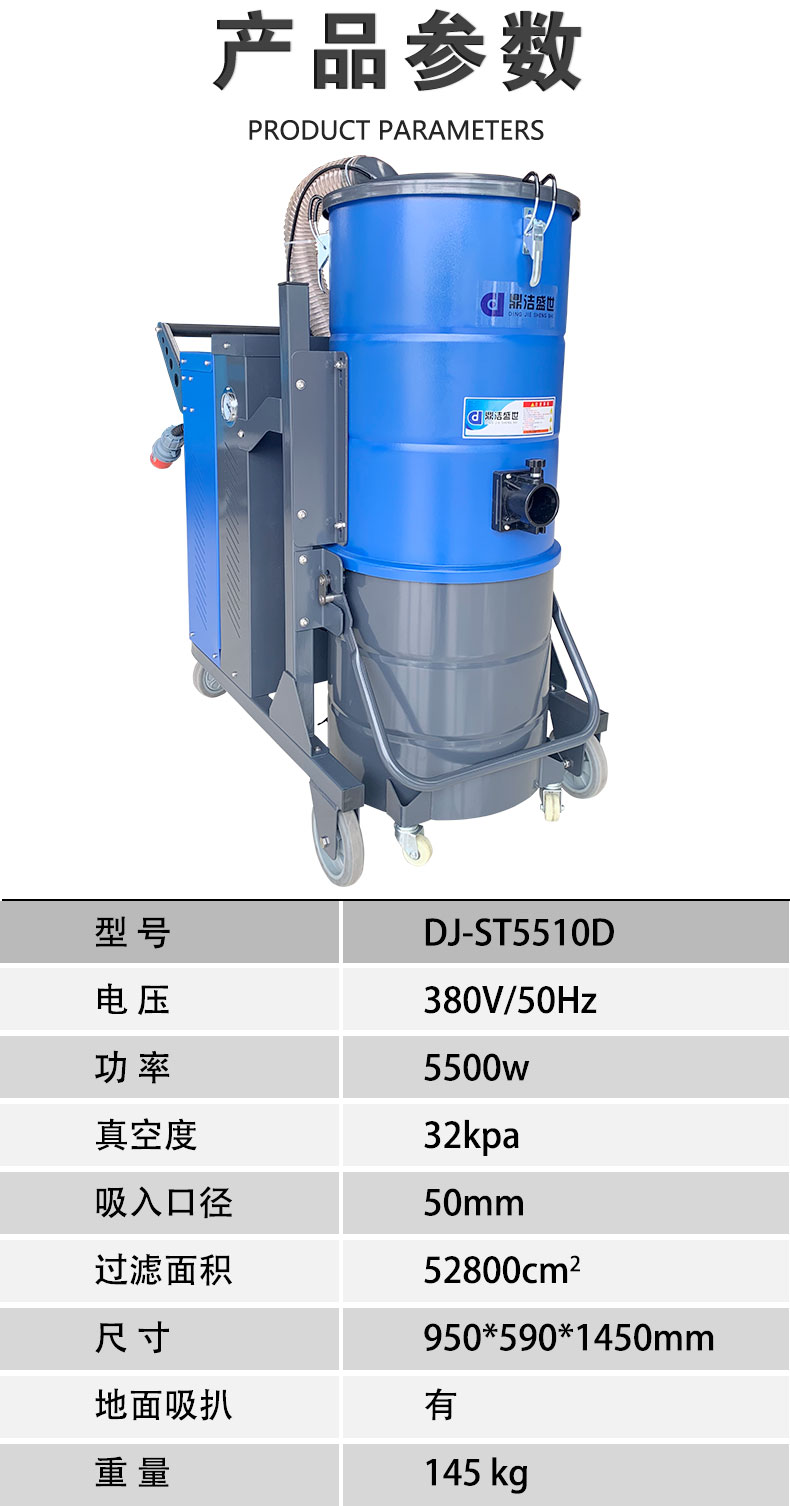 適用場所:DJ-ST5510D工業(yè)專用吸塵機(jī)的無刷工業(yè)電機(jī)可連續(xù)24小時長時間工作,500mm大口徑不怕堵塞輕松吸取各類大顆粒,高強(qiáng)度不銹鋼通身耐擠壓、耐酸堿、耐高壓、耐撞擊。