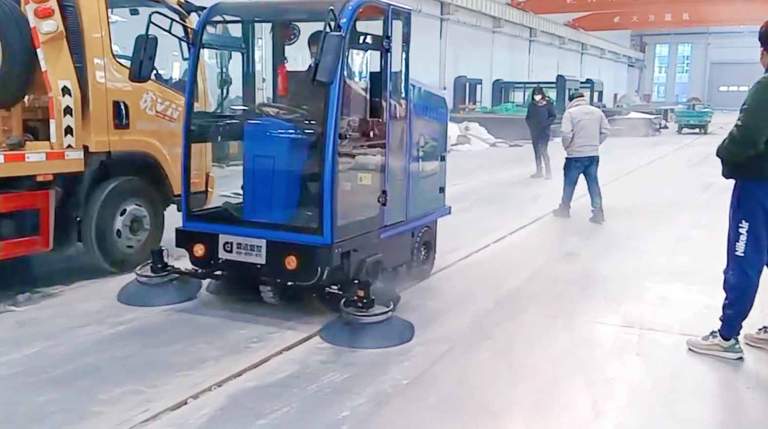 臨工重機(jī)想采購一臺掃地車用于清掃工廠,鼎潔盛世銷售人員問清楚工廠的地面環(huán)境是水泥地面,工廠每天灰塵、垃圾等比較多,鼎潔盛世銷售人員為此推薦了一款駕駛掃地機(jī),雙吸塵風(fēng)機(jī),雙過濾系統(tǒng),超強(qiáng)負(fù)壓吸力大,無揚(yáng)塵,掃地機(jī)為吸塵、掃地、噴水相結(jié)合自動清潔一體機(jī)。
